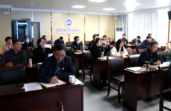 ????彭占亭强调,党史学习教育是贯穿今年全年的一项重大政治任务,任务艰巨、使命光荣,要求全院各单位要以高度的政治觉悟、昂扬的精神状态组织开展好党史学习教育。一要坚持学史明理,强化理论武装。要树牢唯物史观,强化理论思维、历史思维,认真学习贯彻习近平新时代中国特色社会主义思想,深刻理解重大意义、精神实质、丰富内涵、实践要求,真正做到用党的创新理论成果武装头脑、指导实践、推动工作。二要坚持学史增信,筑牢信仰之基。我们要不断深化对人类社会发展规律的认识,深刻认识共产主义的真理性和必然性,深刻认识中国特色社会主义是历史的选择、人民的选择,把共产主义远大理想与中国特色社会主义共同理想统一起来,始终坚守共产党人的理想信念和执着追求,矢志不渝为实现共产主义奋斗终身。三要坚持学史崇德,永葆政治本色。共产党人要明大德、守公徳、严私德,不断加强党性锤炼,砥砺政治品格,知敬畏、存戒惧、守底线,牢记党的宗旨、党纪国法。四要坚持学史力行,做到以行践知。要保持奋斗姿态。始终牢记自己的第一身份是共产党员,第一职责是为党工作,保持只争朝夕、奋发有为的奋斗姿态和越是艰险越向前的斗争精神,在其位、谋其政、干其事,团结带领全院干部师生,不断开创学院各项事业新局面。