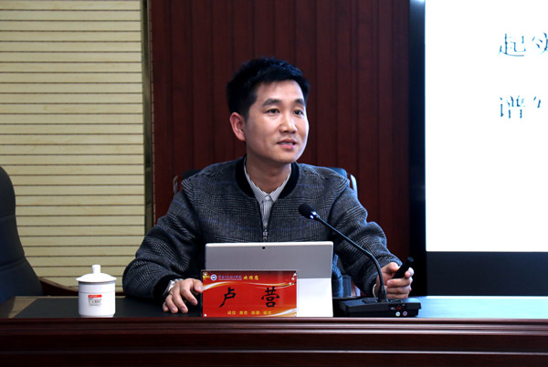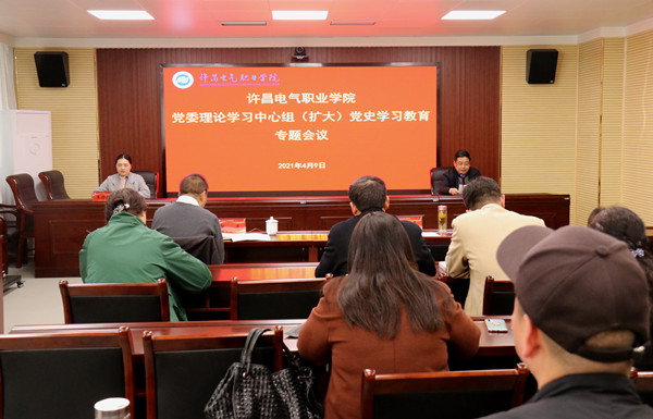 ????4月9日下午,学院在行政楼四楼视频会议室召开党委理论中心组(扩大)党史学习教育专题会议,邀请许昌市委党史研究室第二研究科副科长王丹丹,学院党史学习教育校园宣讲团成员、公共教学部思政老师卢营作宣讲报告。学院党委班子成员,各党总支、党支部书记参加学习。会议由院党委书记彭占亭主持。