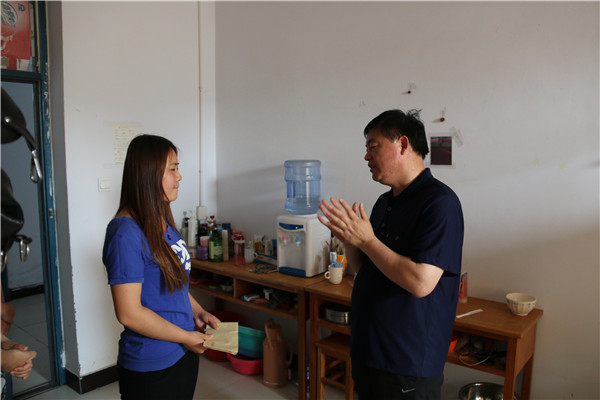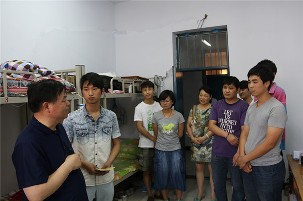 学院主要领导深入班级和学生,进行走访调研,在对学生整体情况调查了解的基础上,5月29日上午,杨德岭院长冒着酷暑,到学生宿舍,亲切看望了2013级张团结、蒋方圆同学,并分别将3000元、2000元(共计5000元)资助金送到了他们手中。蒋方圆同学当场流下了感动的泪水。杨院长叮嘱他们,一定要努力学好科学文化知识,掌握扎实的技能操作本领,将来以优异的成绩回报家庭、回报社会。杨院长还特别鼓励他们,要积极参与学院目前开展的文明教育系列活动,不断加强自身素养,以实际行动在学生中做表率,做社会需要的、高素质的合格人才。最后杨院长还告诉在场的学生,学院的发展需要大家共同努力,欢迎同学们通过各种渠道及时反映学院在教学、管理及各方面存在的问题,学院一定会竭尽所能,为同学们提供最优质的服务。