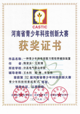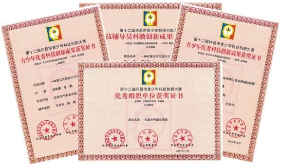 在2017年11月第十二届许昌市青少年科技创新大赛中,电气工程系获得一等奖3项,我校荣获优秀组织单位。