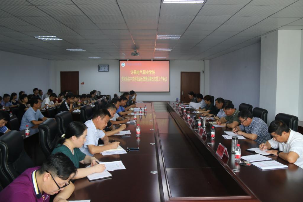 ??????8月13日下午,学院在行政楼二楼会议室召开贯彻落实中央巡视反馈意见整改安排工作会议。学院党委领导班子全体成员、院属各部门负责人及纪委、两办、组宣部、人事处相关同志参加了会议。会议由党委书记杨鲁西主持。