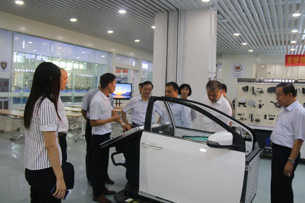 胡市长一行参观了我院合作办学单位北方汽车学院实训基地。调研中,胡市长与学院领导亲切交谈,详细了解学院2018年秋季招生情况,新专业设置,新增合作办学等问题,对学院校容校貌及近年来取得的可喜办学成绩给予高度评价。