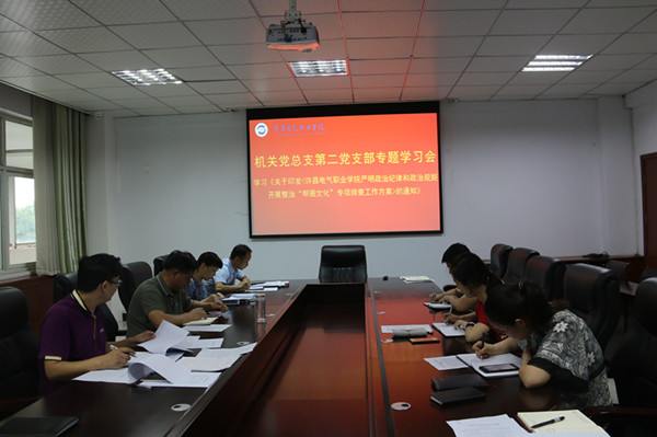 支部书记李松涛首先全文领学了《中共中央组织部关于妥善解决共产党员信仰宗教问题的通知》和《关于召开巡视整改专题组织生活会的通知》。贾红瞻全文领学了《许昌电气职业学院严明政治纪律和政治规矩开展整治“帮圈文化”专项排查工作方案》。孟钢钳全文领学了《中国共产党发展党员工作细则》。