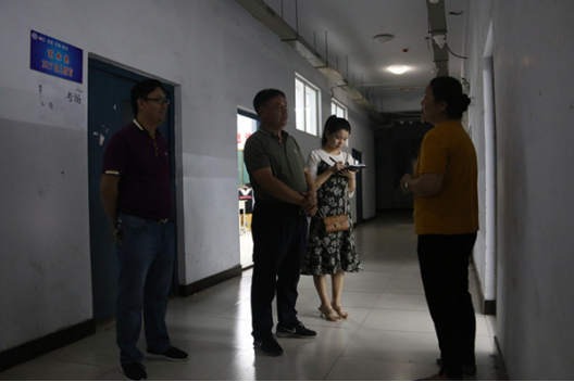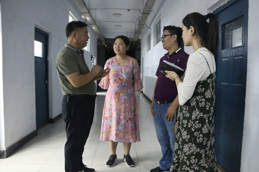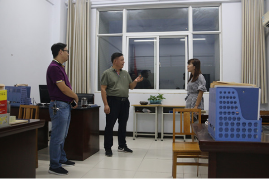 与机电工程系负责人冯振华、值班教师樊伟交流