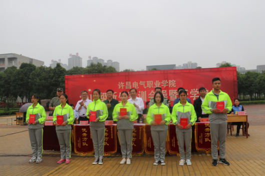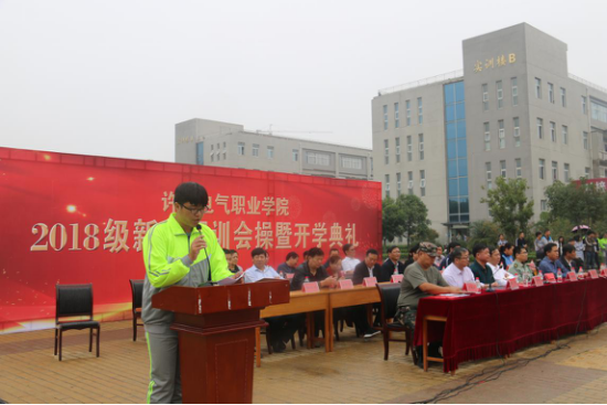 随后,艺术系张牧原同学代表受训新生讲述了军训期间的成长和蜕变,表达了对学校、班主任、教官的感谢。新生辅导员代表郝智临老师发言,希望各位同学能在许昌电气职业学院学有所成,思有所悟,问有所得,行有所获。