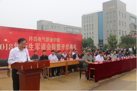 2018年9月20日上午,我院2018级新生军训会操暨开学典礼在学院广场举行,学院党委书记杨鲁西、院长杨德岭、副院长刘涛、冯朝印、工会主席张勇、许昌军分区战备建设处处长陈福星、带队教官袁战军以及学院各部门负责人出席大会,2018级全体新生和辅导员参加了典礼。大会由刘涛副院长主持。