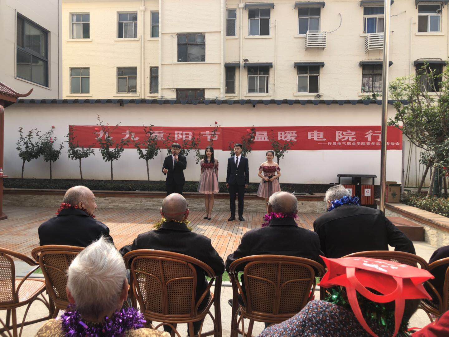 ????菊花吐蕊,桂花含香;岁岁重阳,祈度安康。为弘扬中华民族孝老敬亲的传统美德,在全社会营造爱老、敬老、助老的良好氛围,10月17日上午,院团委、院青协组织60余名青年志愿者赴魏都区东大办事处综合养老服务中心(瑞心颐养院)开展了爱老敬老志愿服务活动,通过一个个精心编排的歌舞节目为老人们献上了一场丰盛的文化大餐,传递了来自电院师生的美好祝福。