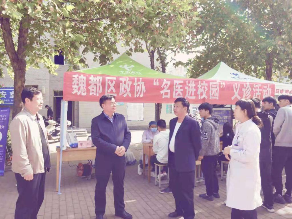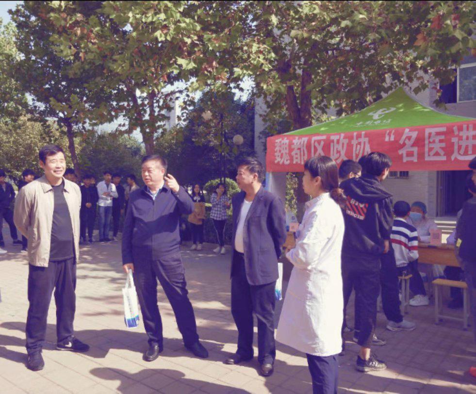 ????10月24日上午,魏都区政协联合许昌口腔医院到许昌电气职业学院开展“名医进校园”大型义诊活动。许昌电气职业学院杨院长、魏都区政协孙书记及许昌口腔医院孙院长和专家亲临现场指导此次义诊活动。