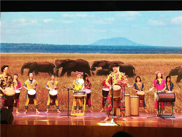 ????非洲鼓社、艺术系鱼洋、曹志文、刘爽、王园园等非洲鼓《djole》将鼓咚咚的节点与晚会结合得如火如荼。