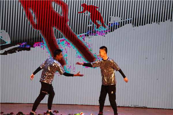 ????机电工程系焦鹏宇、韦望、李博充满青春色彩的《街舞串烧》跳出了小伙们们英朗的姿态,顾盼生辉的神采。