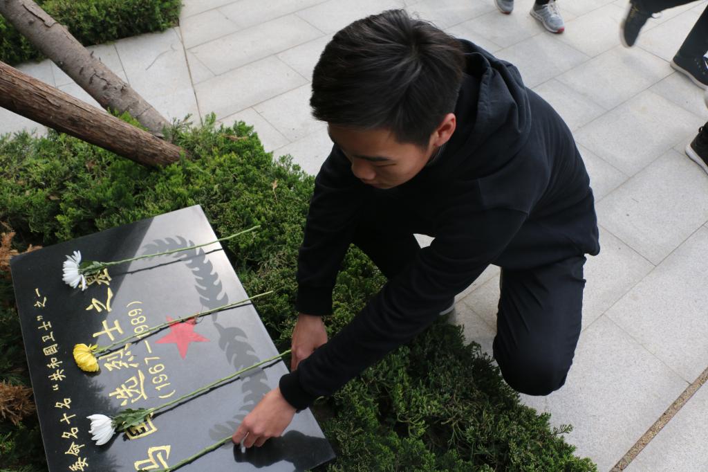 ????上午十点,师生代表面向烈士纪念碑庄严肃立,本次祭英烈仪式共有六项。在庄严的国歌声中,仪式正式开始。奏唱国歌后,优秀团员代表在向烈士纪念碑敬献鲜花,向革命先烈默哀致敬,表达对先烈的缅怀之情。随后,师生在烈士纪念碑前重温了入团誓词,庄严承诺继承和发扬革命先烈的遗志,为祖国的建设和发展奉献自己的青春和热血。仪式结束后,全体人员一一到烈士陵墓前敬献鲜花,并参观了革命烈士纪念馆,追寻革命先烈英勇无畏的足迹,革命先烈的英勇事迹在我们心中永垂不朽。