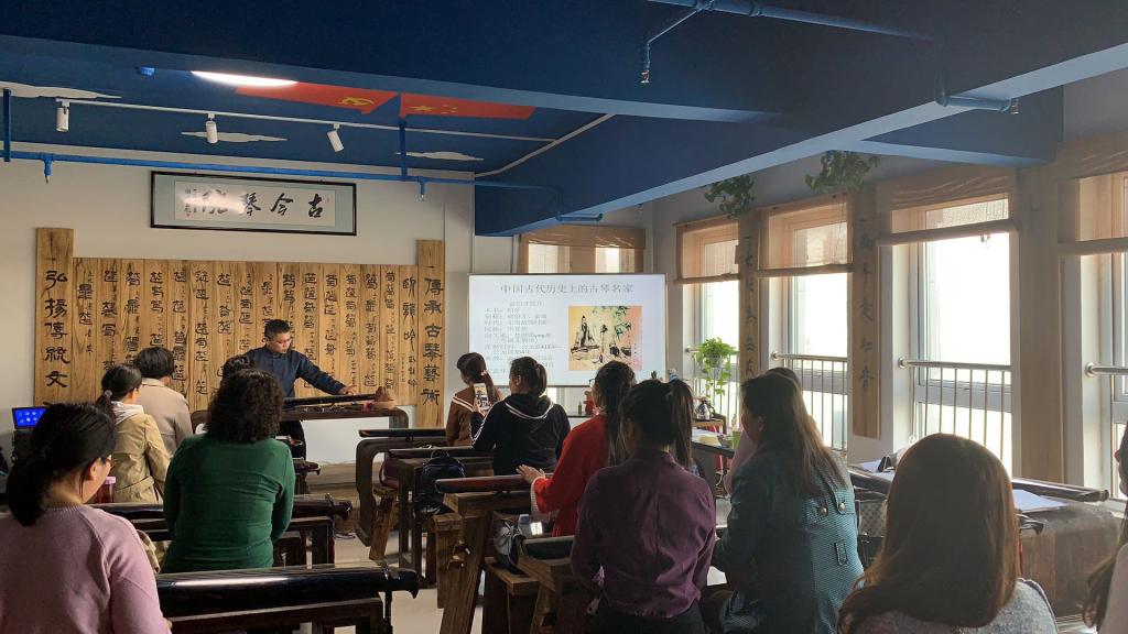 ????古琴艺术是属于全人类的文化瑰宝,是中华民族对世界文化的伟大贡献,它以厚重悠扬的高雅感受,令人备受喜爱。受邀讲课的李老师为大家揭开千年古琴的神秘面纱。他从古琴独特的音色、古琴人文历史、古琴文化演变、琴曲表现张力等向大家展示古琴迸发出的生命力和震撼力。