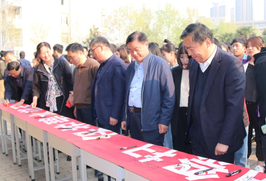 ????慎终追远,民德归厚。一年一度的清明节,赋予了追思怀远、清雅深沉的含义。为进一步深化文明创建,倡导移风易俗,传承红色基因,过一个文明和谐的清明节,继3·28清明节祭扫活动之后,4月3日,我院又举行了一场“倡导文明祭扫,保护碧水蓝天”签名倡议活动。院党委书记杨鲁西、院长杨德岭、副院长刘涛、副院长冯朝印、工会主席张勇、组织宣传统战部部长张明慧以及师生代表出席活动。