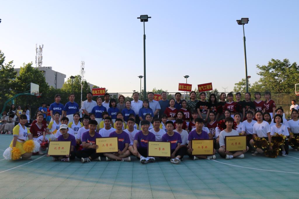????篮球赛决赛结束后,来自各系的拉拉队员为大家奉上了活力四射的啦啦操表演赛。他们用激情的舞姿诠释着青春的奔放,用热情编织青春的朝气,表演赢得了在场观众的阵阵掌声。经过评委打分,最终电气工程系、机电工程系、艺术系分别获得本届啦啦操赛一等奖、二等奖、三等奖,信息工程系和经济管理系获得优秀奖。比赛结束后,学院领导为获奖队伍颁奖并合影留念。