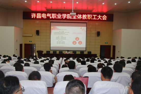 ????为贯彻落实全省教育大会精神,6月5日,我院在教学B楼第二学术报告厅召开全体教职工大会,党委书记杨鲁西同志作题为《深入学习全省教育大会精神,全面开启职业教育新征程》专题报告,学习传达全省教育大会精神会议,会议由院长杨德岭主持,副院长商淑敏、副院长刘涛、副院长冯朝印,工会主席张勇,党委委员、组宣部长张明慧出席会议,全体中层干部及全校教职工参加会议。