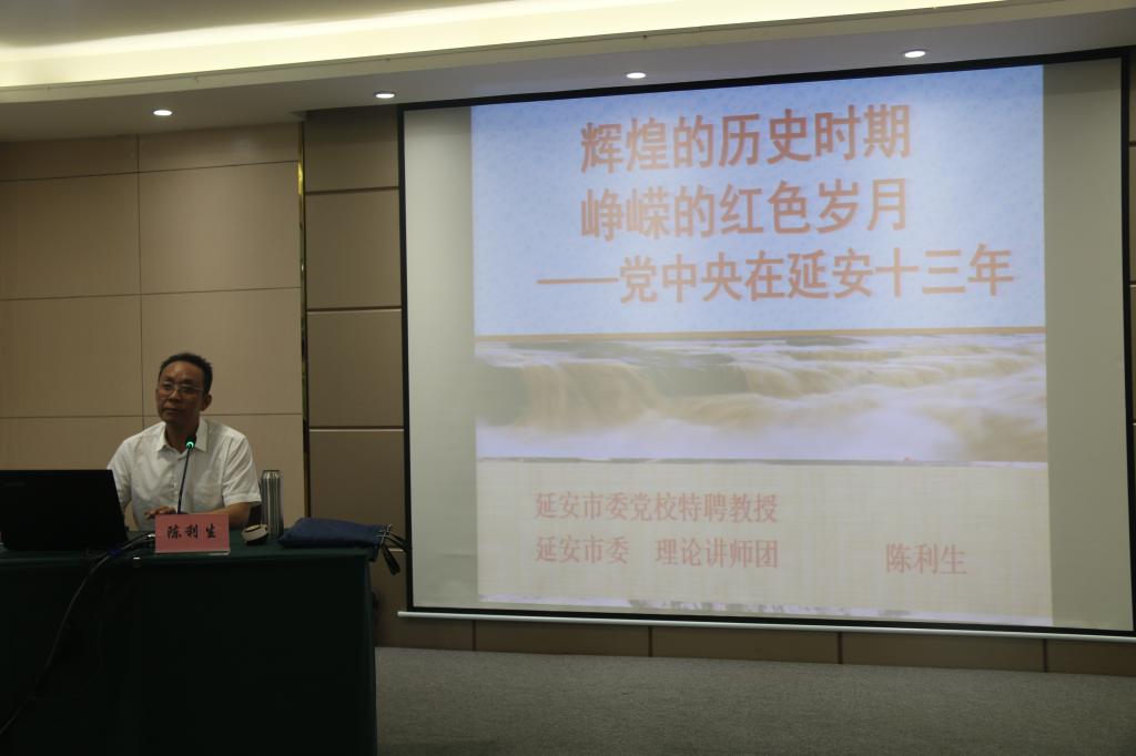 ????培训期间,参训干部认真聆听了延安市委党校特聘教授、延安市委理论讲师团成员陈利生老师《党中央在延安十三年》讲座,陈老师从党中央在延安十三年的光辉历程、辉煌成就、经验启示三方面,借助大量史实和宝贵的图片资料向培训学员生动再现了革命战争年代延安那段辉煌的历史时期和峥嵘的红色岁月。