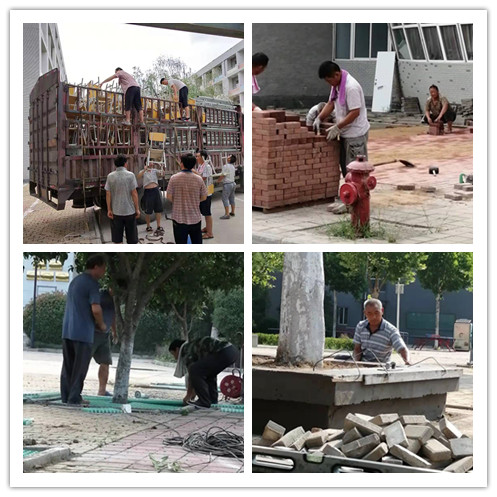 此外,还完成了学生宿舍床铺和衣柜的安装,部分道路、台阶、花池等修补工作。