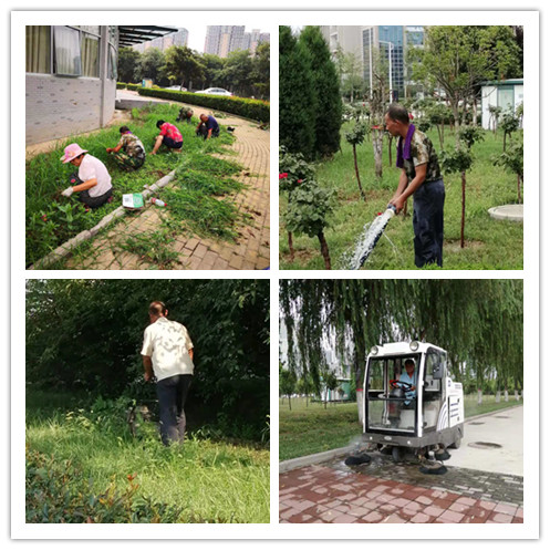 绿化管理部门的员工师傅们头顶似火的骄阳,除草、修枝、浇水、喷药,日复一日的劳动着,从不叫苦叫累,只为全体师生打造一个干净、整洁、优美的校园环境。