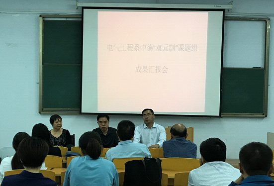 ????首先,冯朝印对课题组前期所做的工作给予充分肯定,从省人社厅、市政府、学院等层面介绍中德“双元制”项目面临的机遇和挑战,认真梳理项目实施的重点,并对课题组提出3点要求:1.转变观念、提升能力。将德国“双元制”职业教育理念融入教学和学生管理中,开展学生主体、能力本位、项目驱动等方面的教育教学改革和研究,全面实施教师、教材、教法方面的教学改革和实施工作。2.强力推行、校内实践。学院积极响应国家政策,全面推行“双元制”、现代学徒制和企业新型学徒制等先进职业教育。电气工程系先行先试,需要尽快形成机电类专业群教学改革成果,以点带面,实现校内推广。3.观摩交流、示范推广。教学是一门艺术,课题组应加强交流学习,原原本本学习,认认真真研究,踏踏实实践,客观公正评价,避免照搬照做,努力形成学院特色和品牌,打造精品工程。