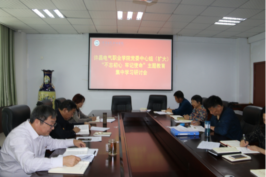 ????9月20日上午,许昌电气职业学院党委中心组(扩大)开展“不忘初心,牢记使命”主题教育第三次集中学习,深入学习习近平总书记关于“不忘初心,牢记使命”重要论述,学习贯彻习近平新时代中国特色社会主义思想。学院党委书记杨鲁西主持会议,学院领导班子成员、副县级干部参加学习。