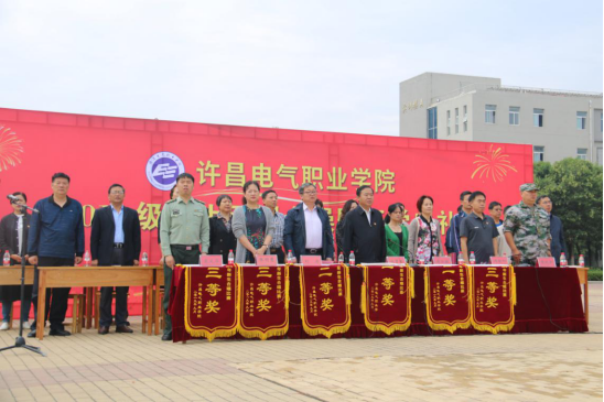 ????9月20日,我院2019级新生军训会操暨开学典礼在学院广场举行。学院党委书记杨鲁西,副院长商淑敏、刘涛、冯朝印,纪委书记张明慧,许昌市军分区学生军训办公室主任宋义华中校、带队教官袁战军以及党委办公室、学生处、各系(部)负责人和全体2019级新生、班主任(辅导员)老师参加了大会。