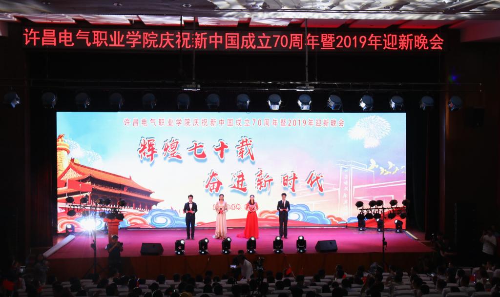 ????9月28日晚,由学院组宣部、院团委主办的“辉煌七十载 奋进新时代”庆祝新中国成立70周年暨2019年迎新晚会在学院大礼堂隆重举行。学院党委书记杨鲁西,院长杨德岭,副院长商淑敏、刘涛、冯朝印,工会主席张勇,党委委员、纪委书记张明慧以及学院800余名师生共同观看了迎新晚会。