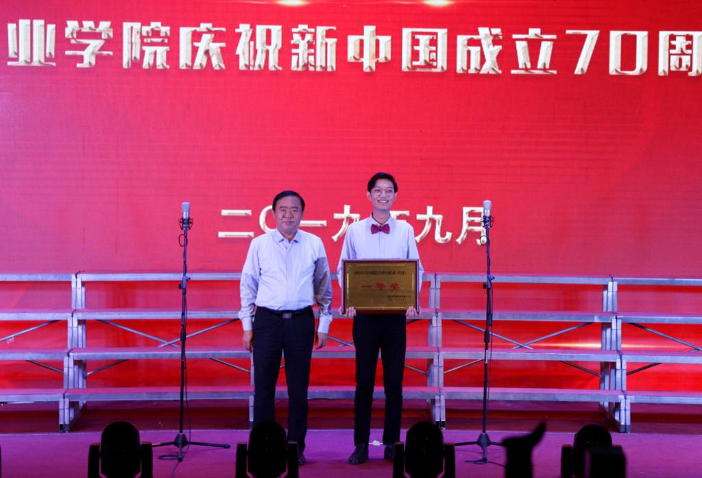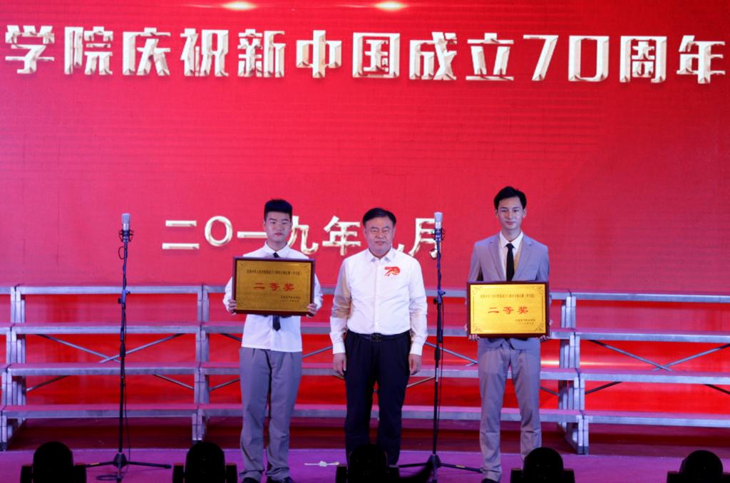????金桂飘香,华诞韵浓。9月29日晚,我院大礼堂内华灯璀璨、歌声嘹亮。学院“庆祝中华人民共和国成立70周年”合唱比赛在这里隆重上演。学院党委书记杨鲁西,院长杨德岭,副院长商淑敏、刘涛、冯朝印,纪委书记张明慧出席活动,并与教职工代表队、学生代表队一起参加演出,用歌声赞美伟大的祖国,祝愿祖国繁荣昌盛。