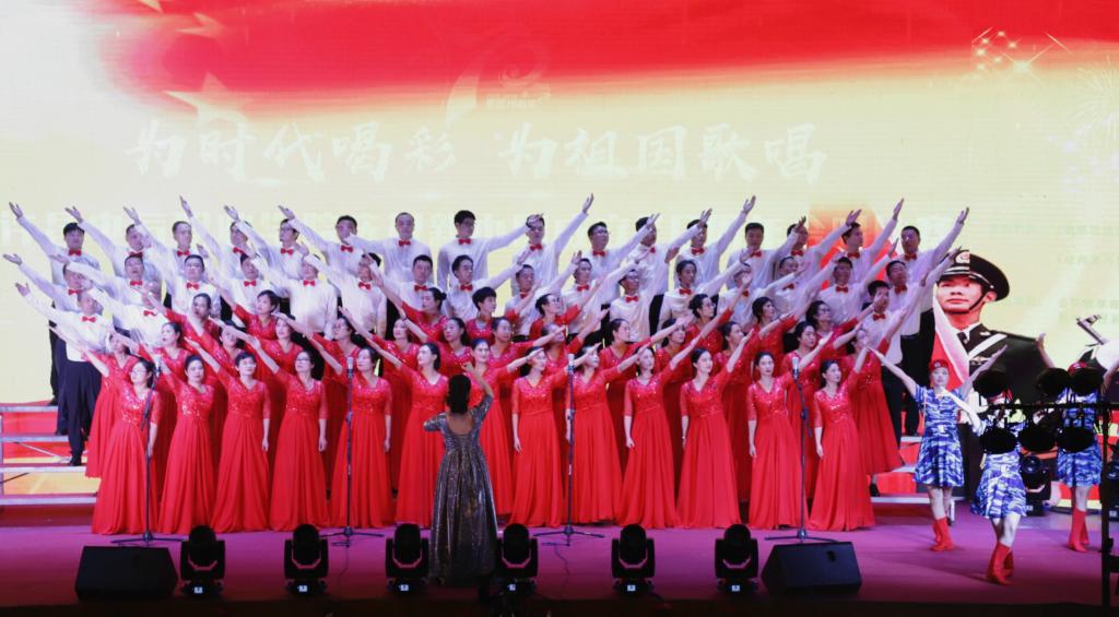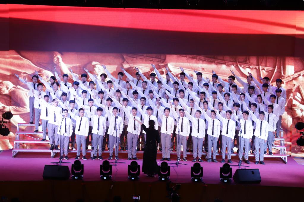 ????由学院教职工和学生组成的15支参赛队伍陆续登场,他们用嘹亮的歌声唱出一曲曲赞歌。气势磅礴的《中国中国鲜红的太阳永不落》《我和我的祖国》展现了祖国的壮丽山河,唱出了华夏儿女对中华大地的深沉热爱;激情澎湃的《保卫黄河》《歌唱祖国》《爱我中华》传达了对祖国繁荣富强祝福与希望;铿锵有力的《没有共产党就没有新中国》《团结就是力量》《强军战歌》歌颂了改革开放四十年来中华民族砥砺奋进的拼搏精神;慷慨激昂的《我们走在大路上》《我爱你中国》《走向复兴》寄予了对新时代中国特色社会主义和学院发展的美好向往。