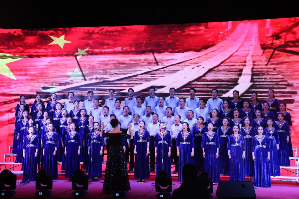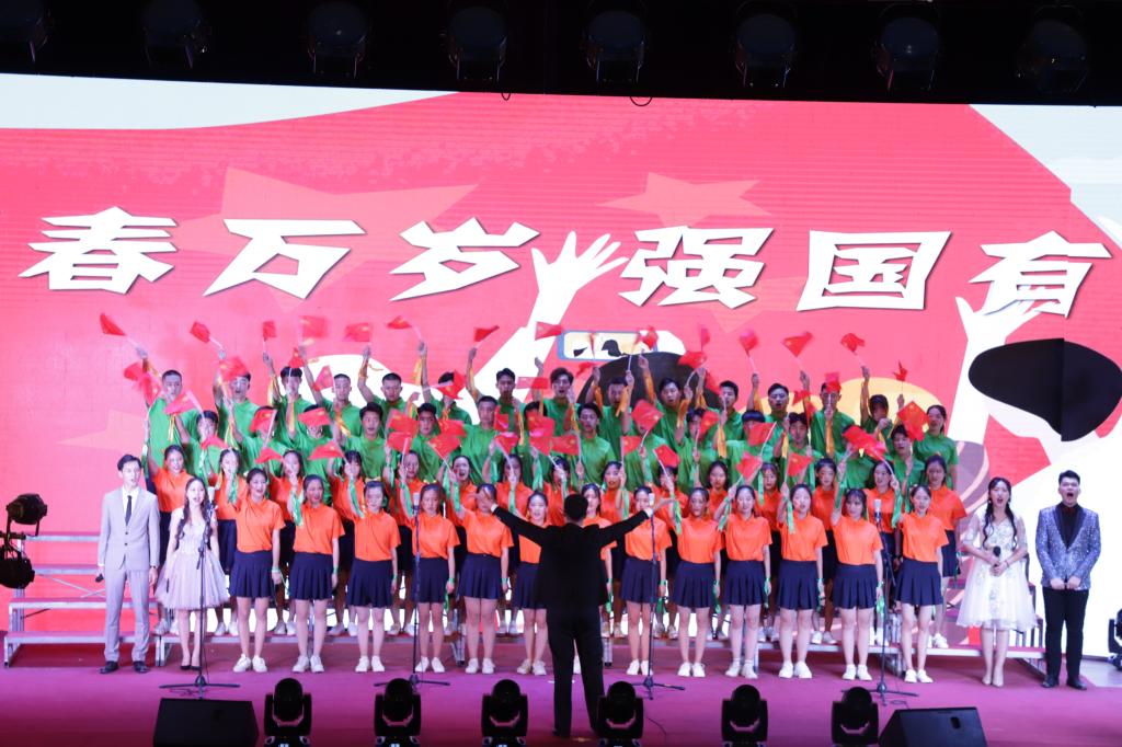 ????一首首脍炙人口的经典老歌,唱响在礼堂的上空,展现了我院师生昂扬向上,团结奋进的精神风貌。台下观众挥舞国旗,齐声高歌,共同祝福祖国明天更美好。