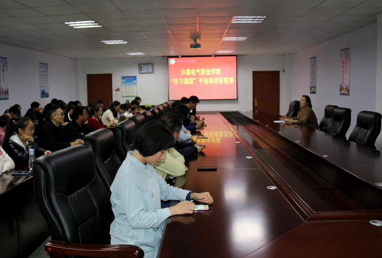 ????为深入贯彻落实习近平总书记关于加强学习、建设学习大国重要指示精神,建好、办好、用好“学习强国”学习平台,进一步提高广大党员学习积极性,10月11日下午,学院举行了“学习强国”平台挑战答题赛。院属26个单位选拔出政治素质过硬、理论素养好、学习积分高的50余名党员参加了挑战赛。比赛由组织宣传统战部副部长张丽主持。