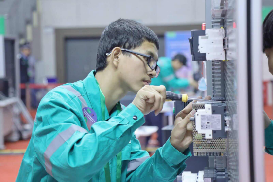 此次比赛,为期两天,分两个模块进行。11月2日进行“模块一:电气装调与工业控制技术”,11月3日进行“模块二:KNX照明系统调试”。赛场上选手们紧张工作、挥汗如雨、沉着冷静、从容应对,发挥了自身水平。