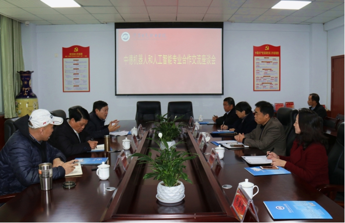 交流会上,副院长冯朝印首先对周青一行的到来表示欢迎,并从学院发展、中德合作办学和学院机器人专业发展等情况向客人作了介绍。周青从中德合作教育交流中心相关情况、开展的中德企业间交流、中德职业教育、校中厂厂中校等方面取得的成果进行了展示。