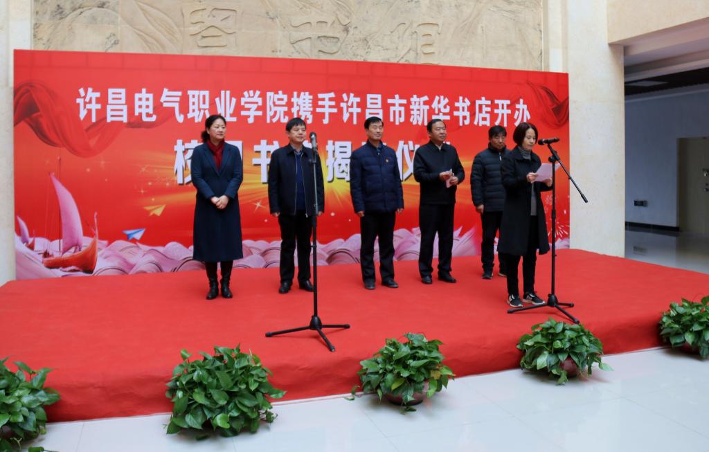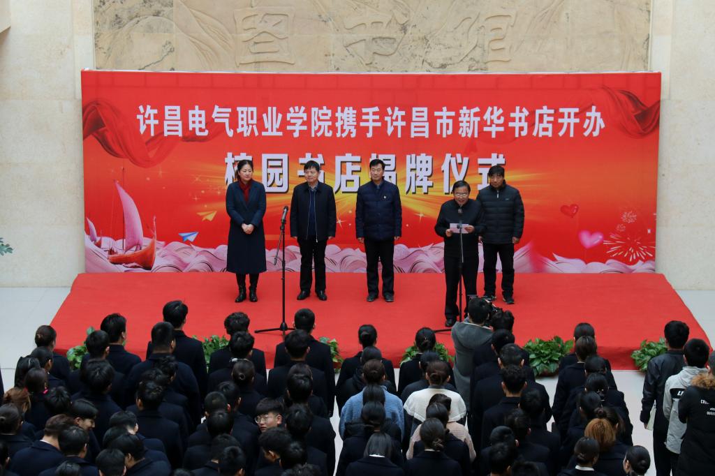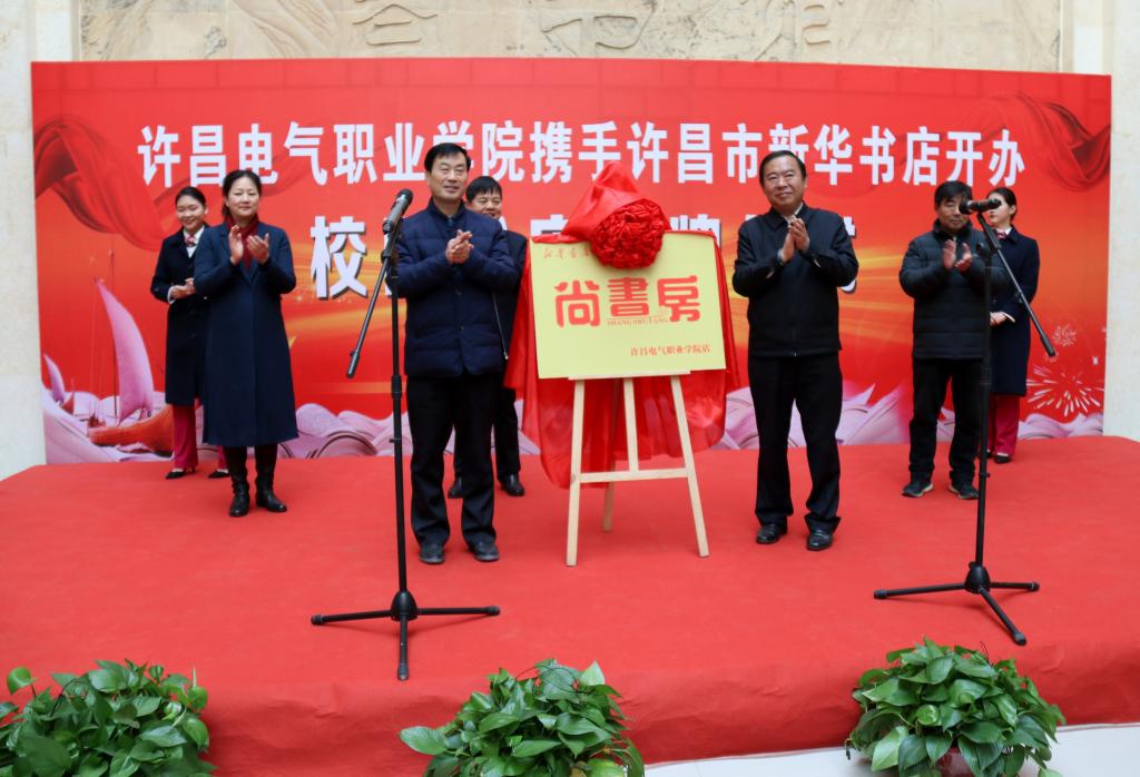 ????11月28日上午,我院携手许昌市新华书店开办的校园实体书店“尚书房”在600多名师生代表的共同见证下正式揭牌。许昌市委宣传部常务副部长赵献东,学院党委书记杨鲁西、工会主席张勇、纪委书记张明慧,许昌市新华书店有限公司总经理赵群生出席了揭牌仪式,揭牌仪式由学院副院长商淑敏主持。