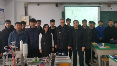 ????Dieter Suttner教授就学院中德职业教学合作项目的进展给予肯定,高度赞赏我院教师和同学们精彩的表现以及刻苦努力的精神,在校企合作、教学组织和实训考核等方面给出一些建议,期盼项目推广河南,辐射全国。