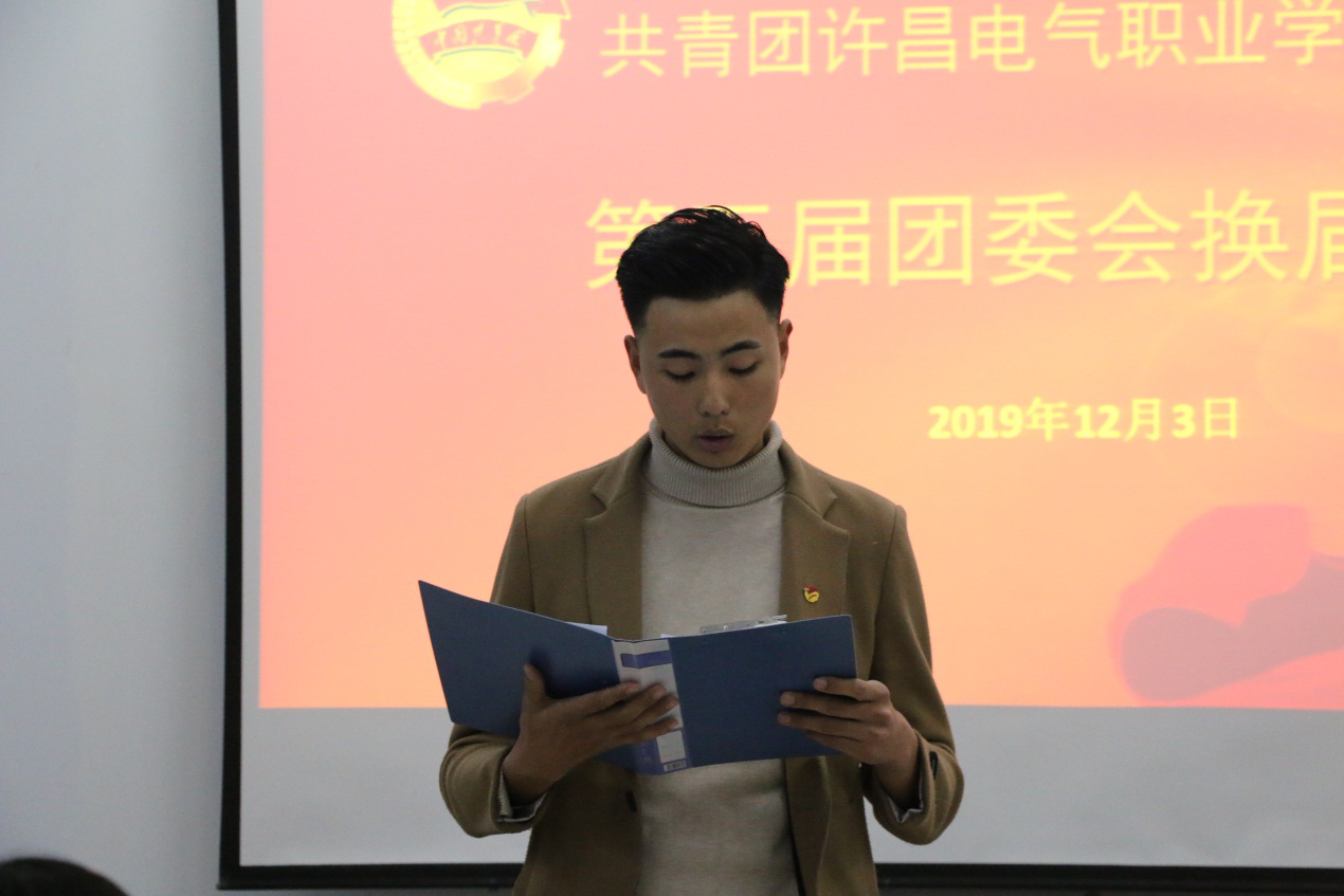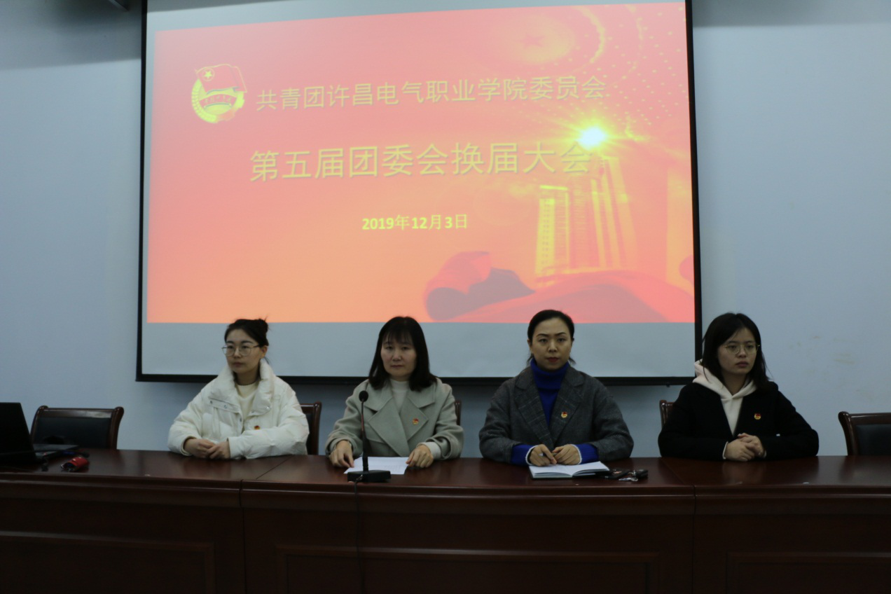????12月3日,共青团许昌电气职业学院委员会举行了第五届换届大会。院团委杨红培书记、全体团委老师及团委会全体干事、学生代表等100余人出席了本次大会。