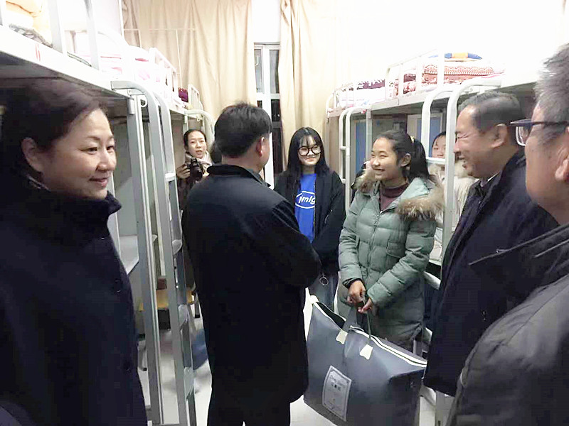 ????12月24日下午,学院党委书记杨鲁西、院长杨德岭、副院长刘涛、纪委书记张明慧、学院学生工作负责人一同走访学生宿舍,看望慰问学生,代表学校表达了对他们的关心与关怀,并向受助学生赠送了棉被。