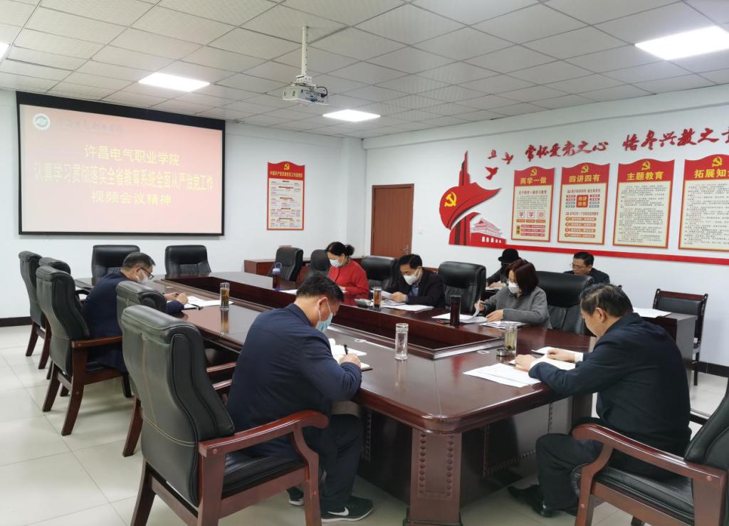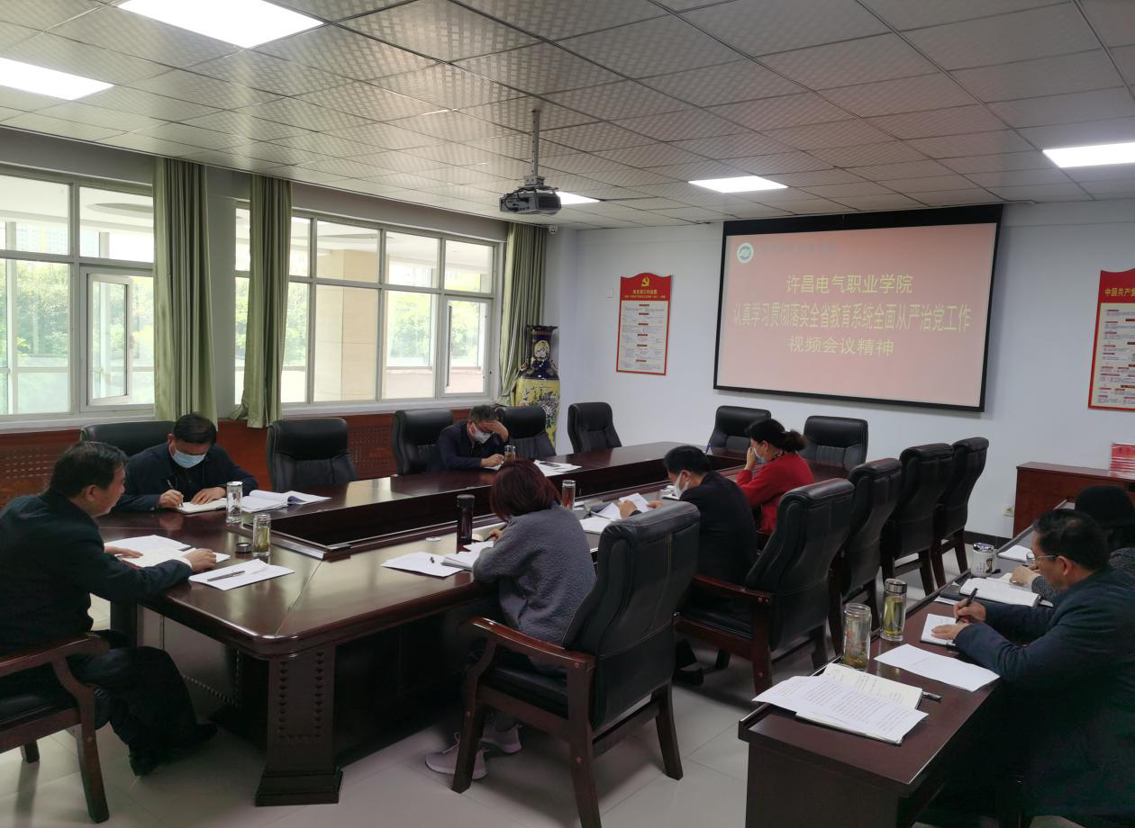 ????4月15日上午,学院在行政楼二楼第二会议室召开党委专题会议,认真学习贯彻2020年全省教育系统全面从严治党视频会议精神,会议由党委书记杨鲁西主持。