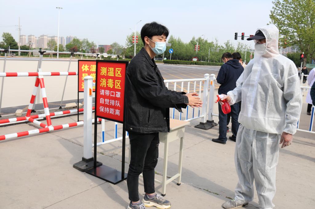 ????作为非常时期疫情防控的重要环节,学院大门的安检至关重要。根据学院统一安排,在学院西校门有工作人员疏导,组织学生排队,避免人流、交通聚集,并给学生测温、消毒。学生扫描个人健康码后,才能进入校园。入校后,学生保持1.5米间隔队形,避免人员交叉。进入教学区、采集区,学生还要进行二次消毒。完成信息采集后,由相关人员引导,及时离开校园。另外,学院还联系示范区尚集镇医院,在校门口设立临时隔离观察点。如遇体温异常者,按预案迅速进行相应处理。