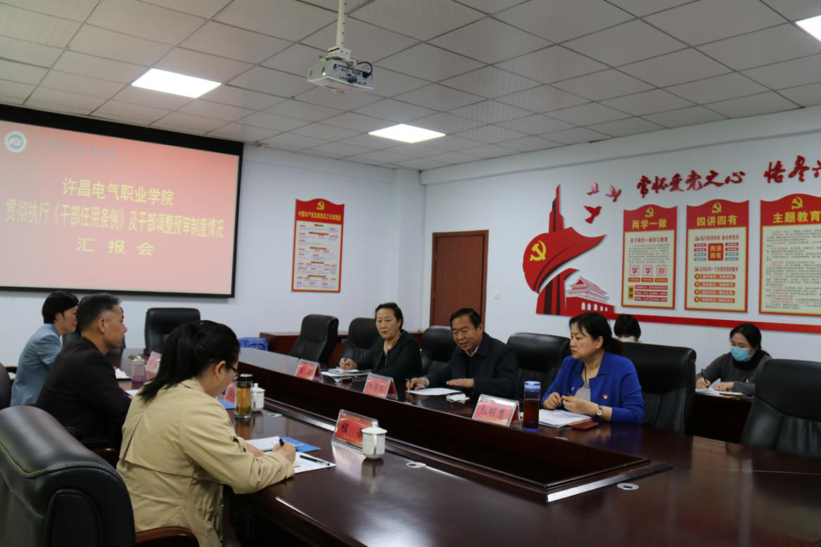 ????随后,学院纪委书记张明慧从政策学习宣传、坚持党管干部原则、坚持好干部标准和树立正确用人导向、执行干部选拔任用工作政策规定、遵守组织人事纪律和匡正选人用人风气、促进干部担当作为等9个方面向调研组同志详细汇报了我院贯彻执行《干部任用条例》及干部调整预审制度情况。张明慧表示,今后学院将坚持从满足学院教育事业发展需要出发,坚持“事业为上、人岗相适、人事相宜”的原则,不断提高选人用人科学化水平,匡正选人用人风气,真正把群众公认、忠诚干净、履职担当的好干部选出来、用起来,努力形成结构合理、作风过硬、素质优良的干部队伍,为推动学院各项事业持续健康稳定发展提供坚强的组织保证。