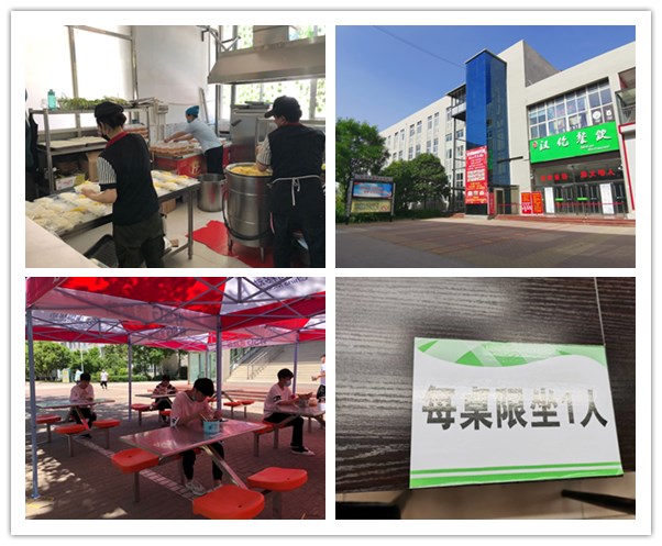 ????学院对学生就餐问题考虑得也很周到。食堂餐桌上以“每桌一人”原则排列的餐位标识清晰可见。学院设置有室外就餐安排,提供套餐,提倡打包带走,许多学生就餐时按要求,排队将饭菜盛入自备的餐盒中,带回寝室食用。