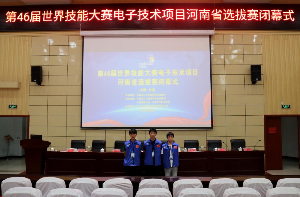 ????经过三天激烈的角逐,在我院举办的第46届世界技能大赛电子技术项目河南省选拔赛于7月1日下午圆满闭幕。学院党委书记杨鲁西、院长杨德岭,省职业技能鉴定指导中心竞赛部副部长李国军,许昌市人社局副局长吴强,市公共就业服务中心主任张金国,市人社局职业能力建设科科长赵耀,该赛项裁判长付少华教授,许昌技师学院副院长刘涛、冯朝印,以及全体参赛选手和指导教师参加闭幕式。闭幕式由副院长冯朝印主持。