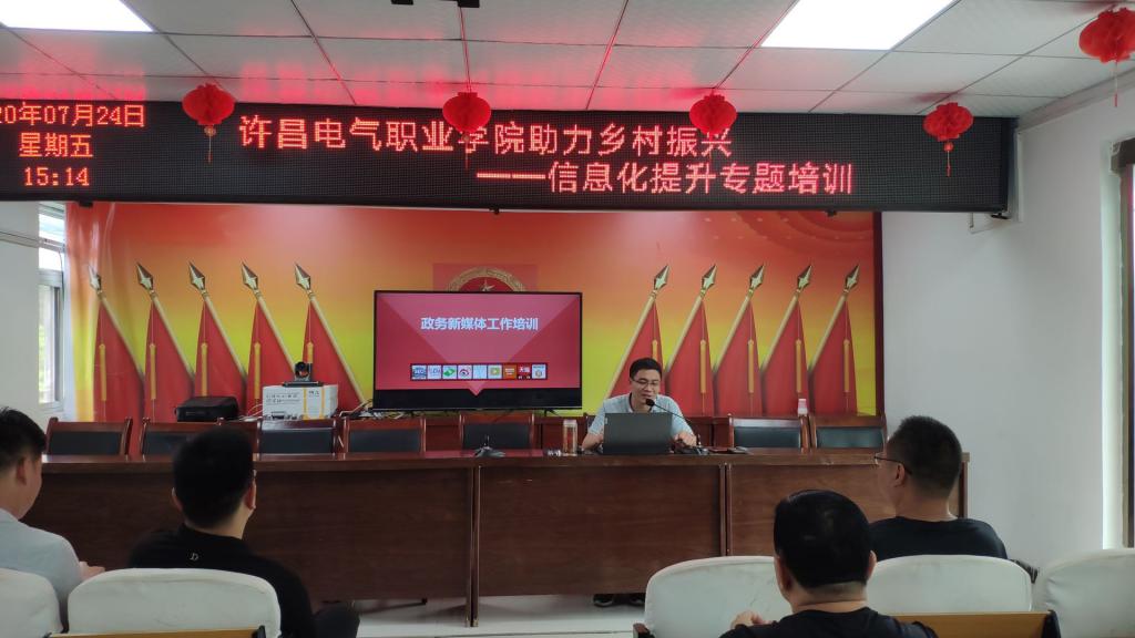 ????7月24日,应襄城县十里铺镇党委政府邀请,我院驻该镇科技副镇长姚小禹联系信息工程系,由北大青鸟新媒体专家董强召老师开展“信息化提升”专题培训。镇党委书记任晓磊、镇长王永伟带领全体党政领导班子和镇政府全体机关干部共同参加培训。