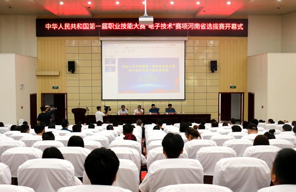 ????院长杨德岭致辞时表示,学院以就业为导向,以一流高技能人才培养的摇篮和基地为办学方向,坚持走“高端引领、校企合作、多元办学、内涵发展”之路,在许昌高素质、高技能、创新型人才培养方面,一直发挥着不可替代的引领作用。近年来,在市委市政府的坚强领导下,在省人社厅的深切关心下,在市人社局的大力支持下,学院办学水平、办学规模更是高歌猛进,办学优势日益突出、发展势头越发迅猛,先后获得了国家高技能人才培养基地、中央财政支持特色专业院校、河南省职业教育特色院校、河南省城乡劳动者技能培训品牌基地,河南省“高水平学校、高水平专业群”建设单位,许昌市文明标兵单位和河南省文明校园,是河南省中德双元制职业教育合作试点单位。学院坚持立德树人,匠心育人的同时,不忘为全民职业技能提升事业提供强有力的技术支撑和平台服务。近年来,学院积极承办各级各类职业技能竞赛活动,大力弘扬精益求精的工匠精神。不久前,学院刚刚圆满承办了第46届世界技能大赛电子技术赛项河南省选拔赛,得到了省、市人社部门、各参赛院校、参赛选手、各局委相关部门以及社会各界的一致好评。杨德岭强调,省人社厅把中华人民共和国第一届职业技能大赛电子技术赛项河南省选拔赛承办地放在许昌技师学院,对于许昌郑许一体化战略实施,构筑千亿级电力电气产业群发展意义重大,对促进许昌技师学院现代化发展,提升服务许昌区域经济社会发展能力意义非凡。