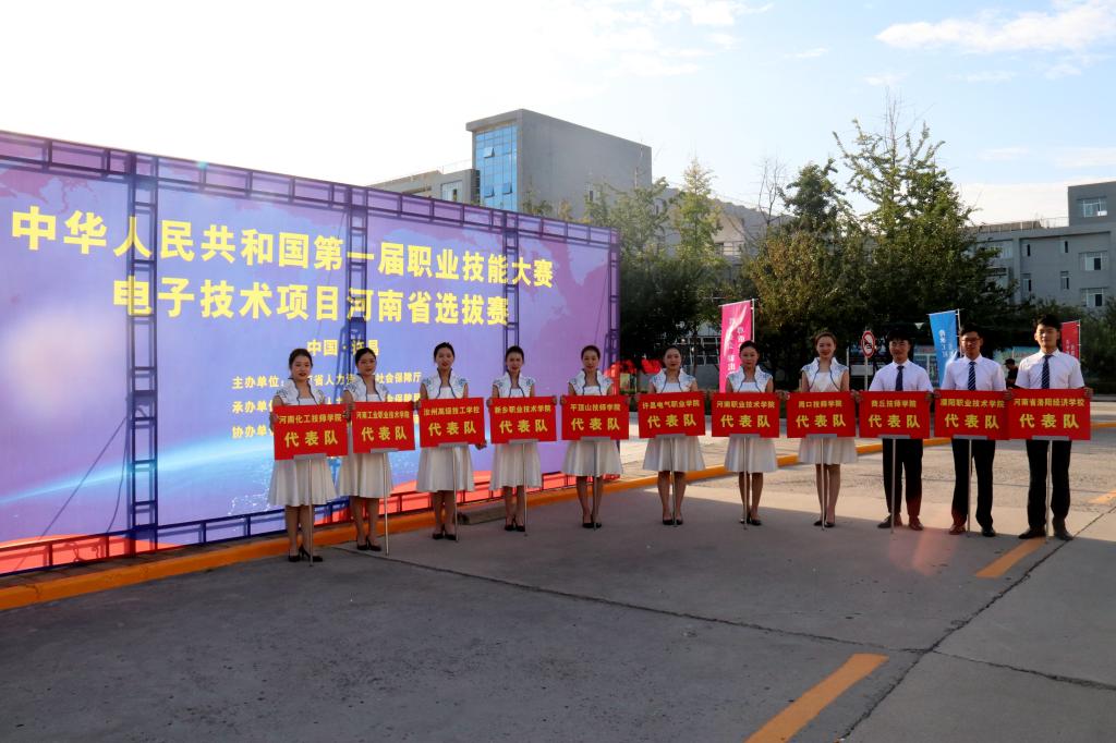 ????9月19日,中华人民共和国第一届职业技能大赛电子技术赛项河南省选拔赛在我院隆重举行。许昌市人力资源和社会保障局副局长张述平、副局长吴强,学院党委书记杨鲁西,院长杨德岭,全体院党委委员,有关处室、系部负责人、教师代表、裁判以及来自全省11个代表队的领队、指导老师和选手参加了本次大赛开幕式。开幕式由院党委书记杨鲁西主持。
