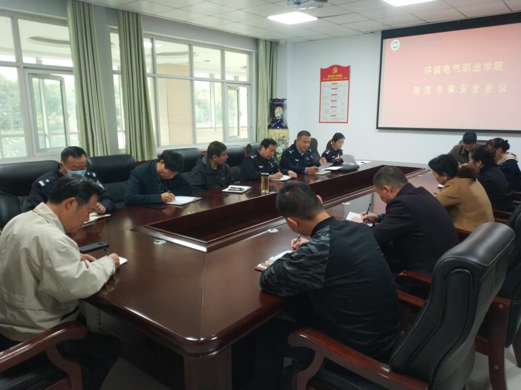 ????为深入贯彻省公安厅《关于组织开展防范电信网络新型违法犯罪集中宣传月活动》的通知,提高师生的法制观念,增强师生防诈骗意识。11月11日上午,学院在第二会议室召开防范诈骗专项安全工作会议,对学院的防范电信网络新型诈骗工作进行动员部署?;嵋橛裳г旱澄?、工会主席张勇主持,许昌示范区公安分局王现军局长带领治安大队、社区民警一行四人、学院保卫处长杨绍业、学生处长张慧敏及各系主任参加会议。