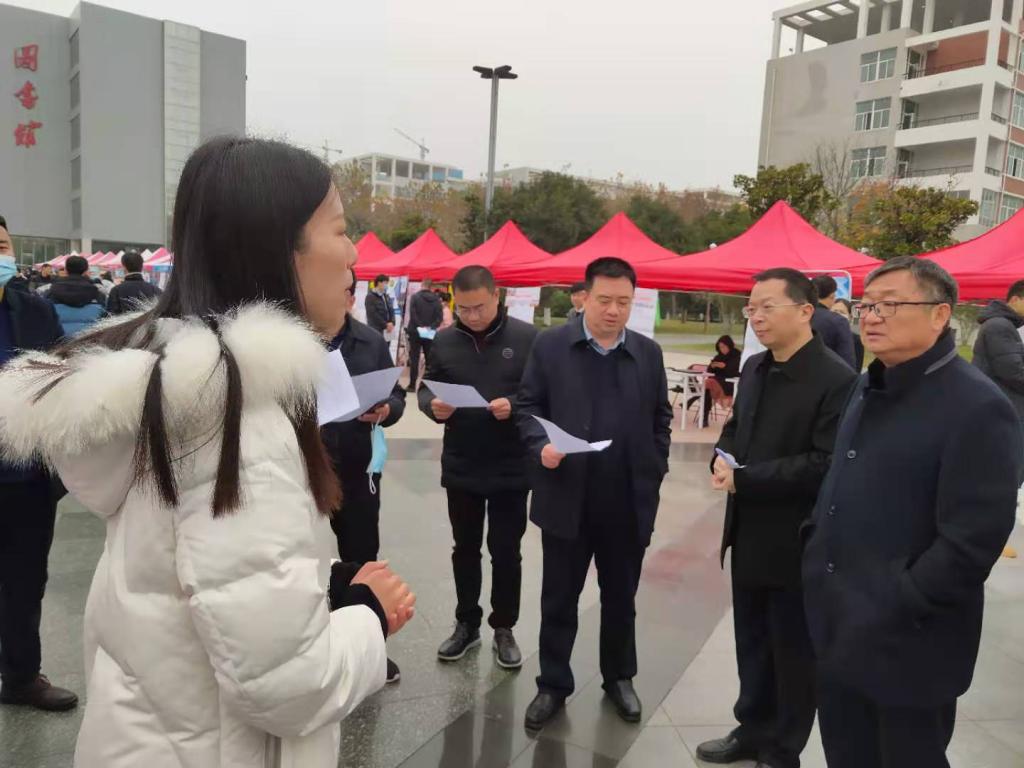 ?????11月28日上午,许昌市人力资源和社会保障局、许昌职业技术学院、许昌电气职业学院联合举办“许昌市2021届大中专毕业生校园招聘会”。人社局副局长梅成亭、吴强以及许昌公共就业服务中心书记张明勋、中心主任张金国,我院副院长刘涛在招生就业处副处长陈武的陪同下到招聘会现场指导工作。