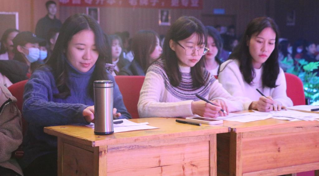 ????决赛现场,学院纪委书记张明慧、党委宣传部部长张国栋、公共教学部主任李保茹,团委书记杨红培,团委组宣部长丁姝出席比赛并为获奖选手颁奖。
