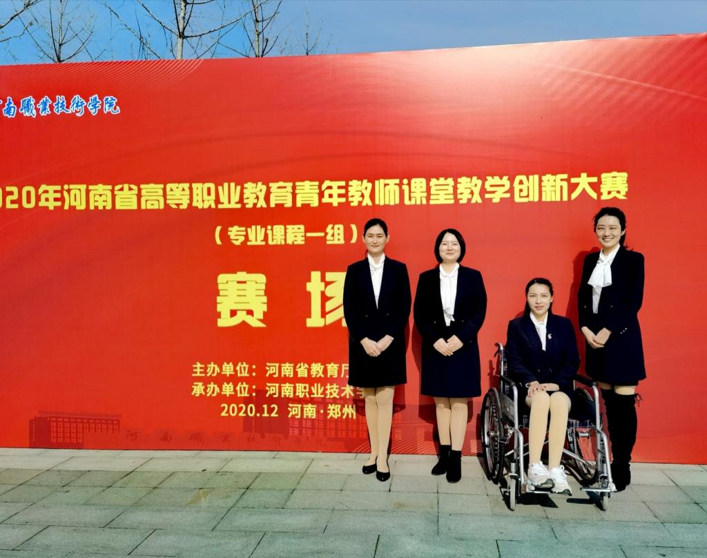 ????12月20日,由河南省教育厅主办的2020年河南省高等职业教育青年教师课堂教学创新大赛(专业课程一组)现场决赛落下帷幕。经过激烈角逐,由我院老师肖莹莹、郝园园、刘亚芳和郑嘉君组成的教学团队荣获特等奖。