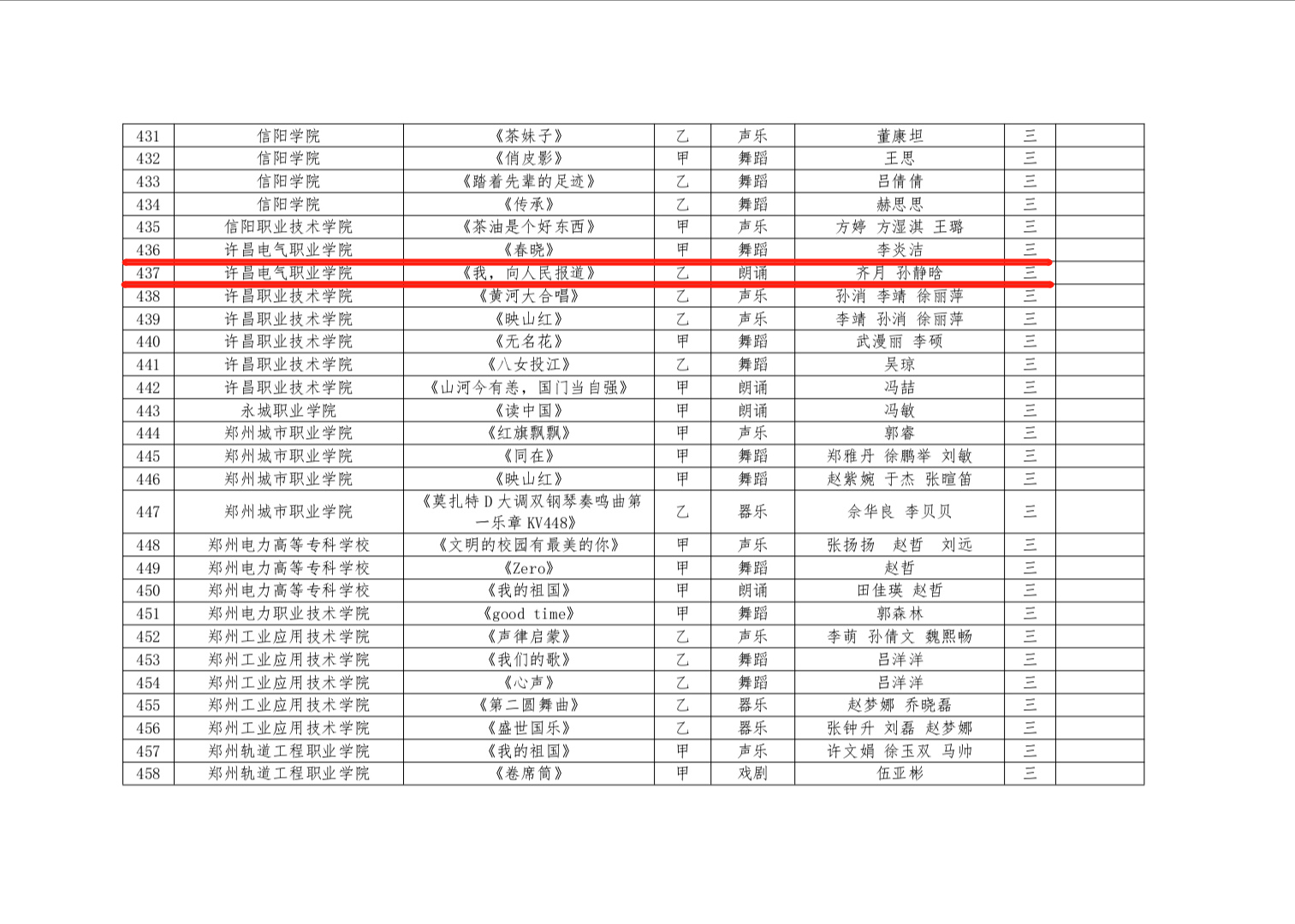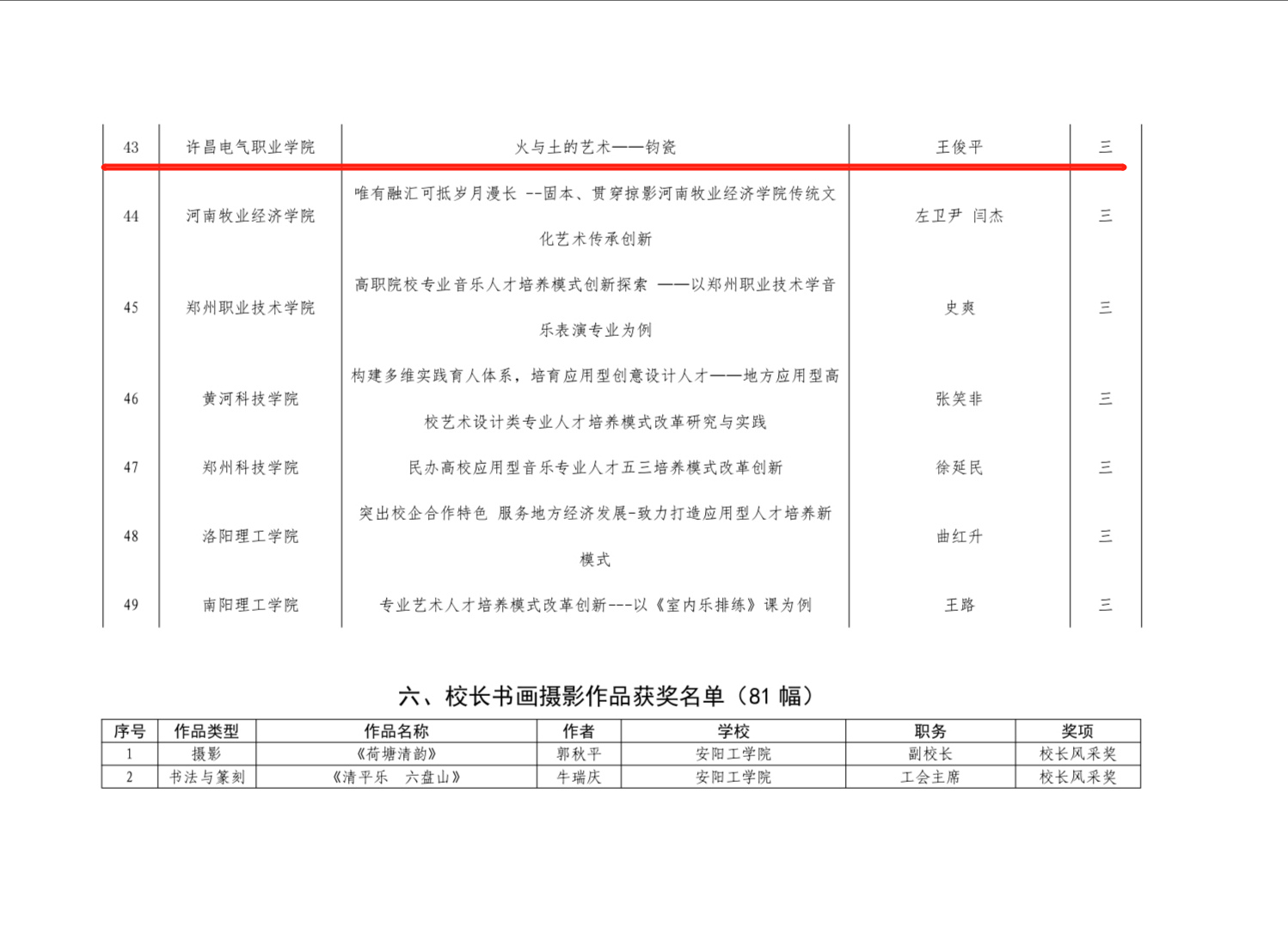 ????近日,河南省第六届大学生艺术展演活动评选结果公布,由我院选送的 4件作品获奖!