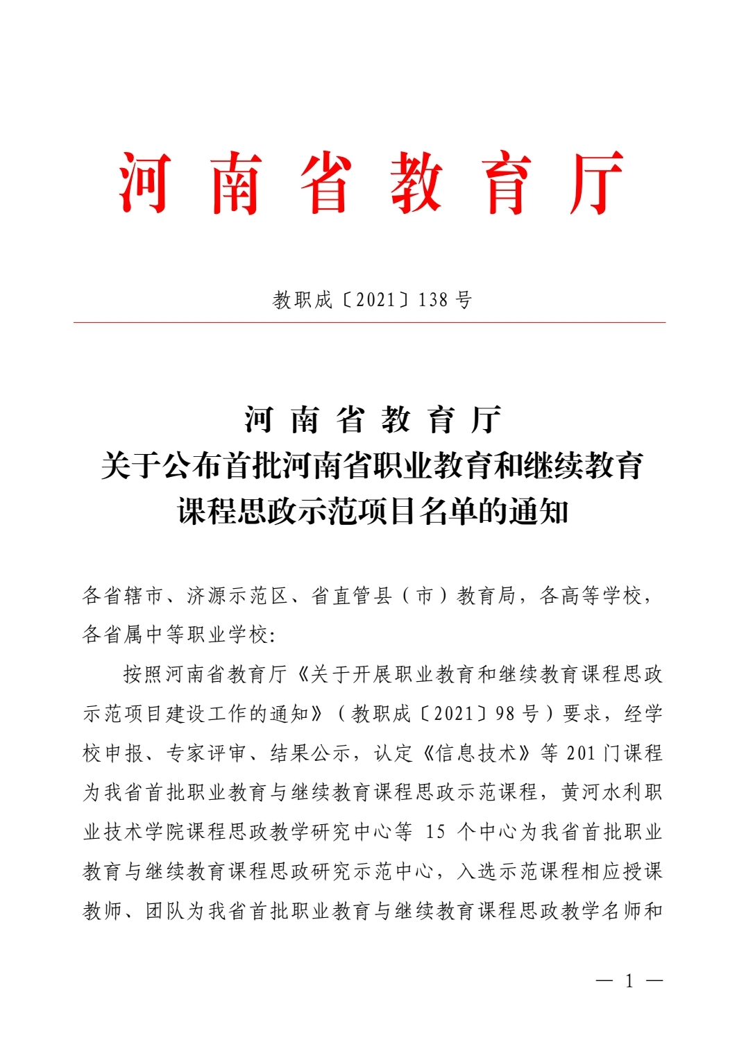 近日,河南省教育厅下发了《河南省教育厅关于公布首批河南省职业教育和继续教育课程思政示范项目名单的通知》(教职成[2021]138号),我院有《模拟电子技术》、《客舱服务》两门课程被认定为首批河南省职业教育课程思政示范课程,入选示范课程的相应授课教师、团队为我省首批职业教育课程思政教学名师和教学团队。